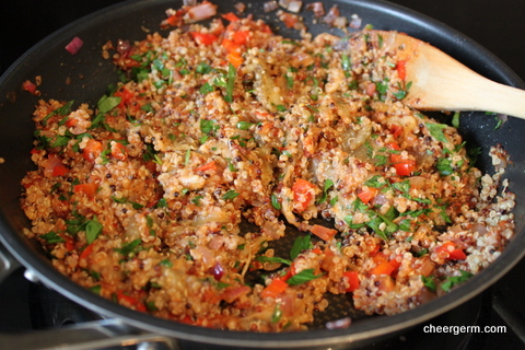 We served this salad with grilled haloumi, lamb chops marinated in ras el hanout, and a big plate of roasted kumara and potato.