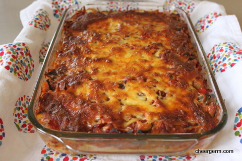 This vegetarian polenta pie is a great ‘big group gathering dish’, as it makes a motza. It’s an adaptation of a recipe from Two Peas and a Pod, a delightful food blog with tonnes of varied recipes. It’s a bit like a lasagna, without the pasta and white sauce. Polenta is cornmeal that is boiled into a hearty porridge (sounds scrumptious?) then eaten directly or baked, fried or grilled. It is gluten free so it’s a great ingredient for Silly Yaks.