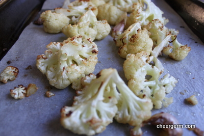 Check at 30 minutes and remove from the oven if the cauliflower is tender. Place aside and peel the garlic when it has cooled.