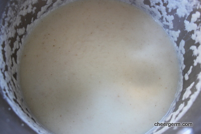 Add the cooked cauliflower and peeled garlic, water, stock powder, salt and some pepper.