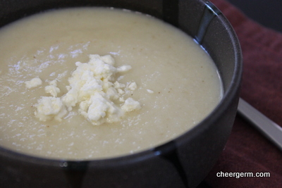 We enjoyed this soup topped with crumbled fetta and crunchy toast on the side.
