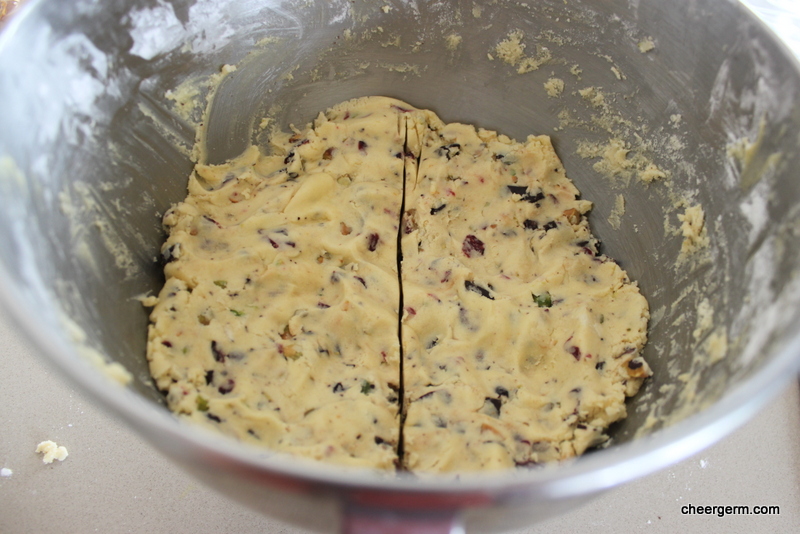 Add the pistachios, cranberries and chocolate and knead lightly to bring together to a dough. (I do this in the bowl.) Knead a little longer for a regular version.