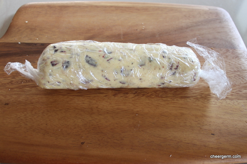 Divide the dough in half, roll each half out to a 3-4 cm log. Wrap in clingwrap and refrigerate for half an hour to an hour.