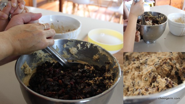 Add the pistachios, cranberries and chocolate and knead lightly to bring together to a dough. (I do this in the bowl.) Knead a little longer for a regular version.