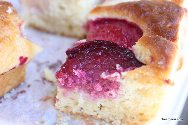 As if that wasn’t enough, The Lovely R had baked what she called ‘ciasto dla lenisych’, or The Cake for Lazy People. (An apt description for our family at this picnic.) A lovely yeasty, vanilla cake that sits in its batter state and bubbles away overnight before baking. She had topped it with ruby red plums and sweet nectarines. It was seriously good. As if we had not been spoiled enough, The Lovely R bestowed upon us some gorgeous handmade gifts. These included gorgeous ceramic glazed brooches made by a friend of hers as well as brightly coloured adorable local pottery (which bizarrely fit in with the chicken theme of the day) as well as scrumptious Polish caramels. Please stay here forever and look after us. Please.