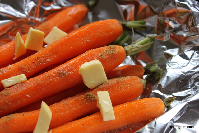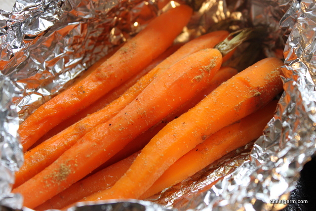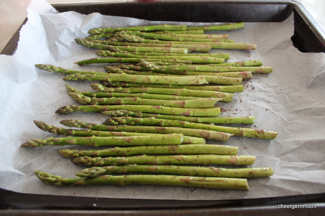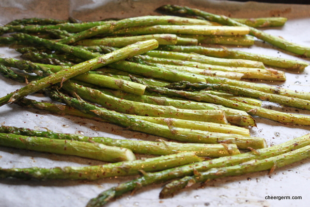 Put the trays into the oven, turn the veggies over after 15 minutes, cook for another 10 minutes until the veggies are tender. You may have to leave the head of garlic in for another five minutes.