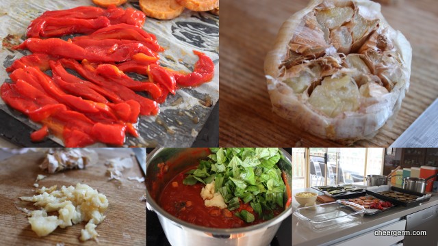 Take the head of roasted garlic, peel and squash up the peeled cloves. (This is to add to the red sauce.)