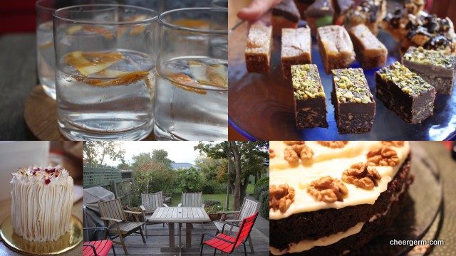 Special gin (laden with botanicals) and tonics with orange peel, Italian food, cousins and beers, laughing like loons and catching up. Some cooking and baking is also accomplished by sisters together again. A perfectly balanced carrot cake (not too sweet, not too savoury) topped with walnuts foraged from the tree next door. A delicate seafood chowder laden with NZ seafood. We all pitch in.