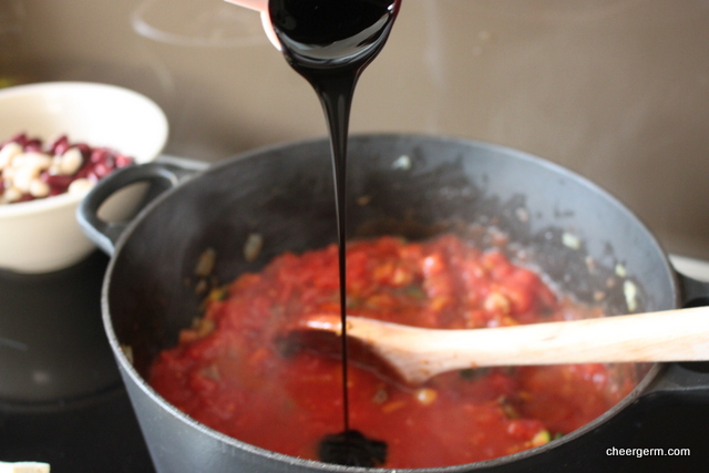 Simmer the sauce until it reaches the consistency where it coats the back of a spoon, this takes about 5-10 minutes.