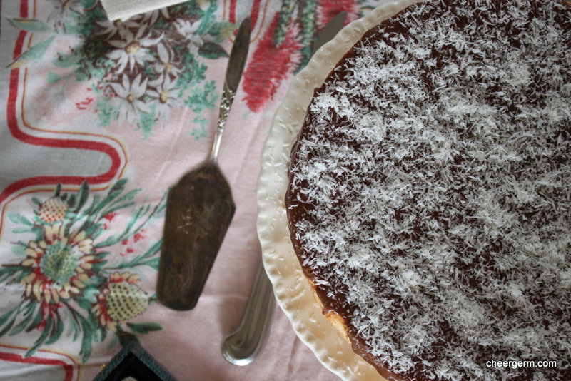 Drizzle the chocolate icing over the top, then sprinkle generously with the coconut.