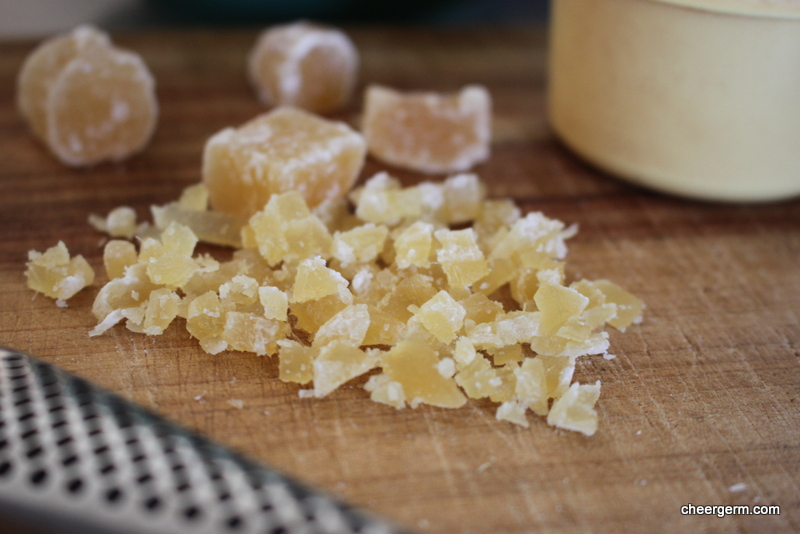 30g bare uncrystallised ginger, finely chopped (if you can’t find this ‘naked’ stuff just use crystallised.)