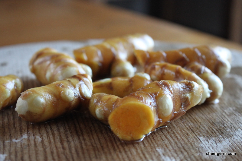 Today’s recipe is more of a delicious idea than a recipe. Mum gave me a turmeric plant a little while ago and I excitedly harvested it the other day. I peeled and grated a bulb then threw it into the dinner potatoes alongside some olive oil, crushed garlic, sumac and sea salt then baked them until golden brown. Earthy, slightly tangy with a garlicky hit, the lads loved this little twist on a regular side dish.