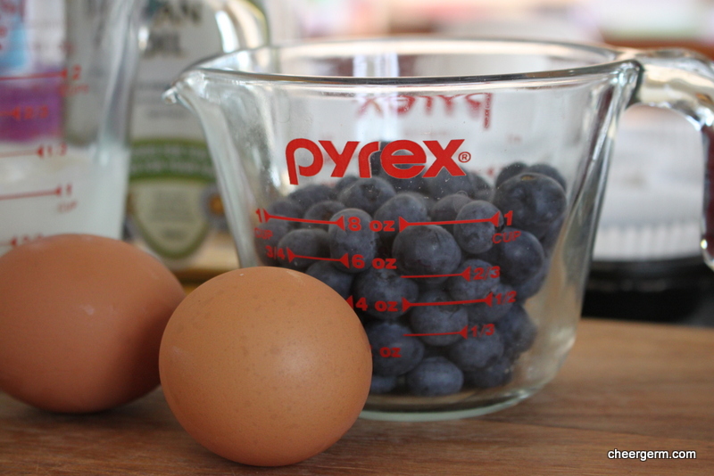 Add the blueberries and toss them in the flour mixture. This flour coating helps them to not sink when baking.