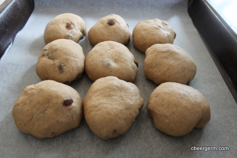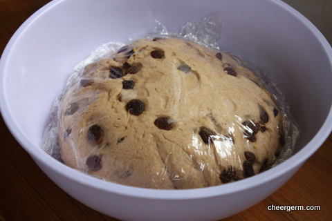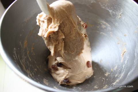 Sift the flour, almond meal and baking powder. Stir the flour mixture into the rest of the ingredients.