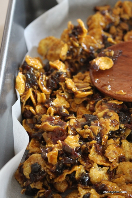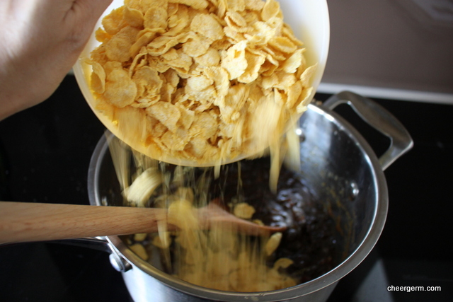 Remove from the heat and mix in the cornflakes.