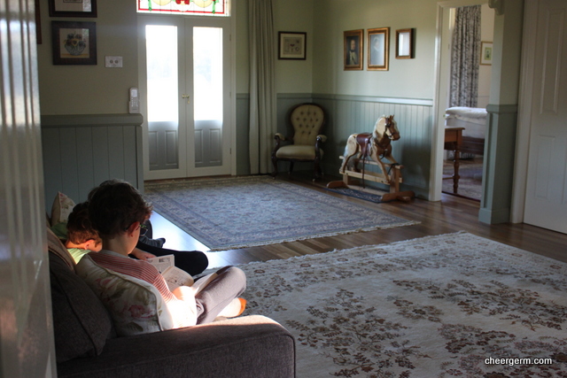 This year we booked The Blue House in the beautiful Blue Mountains village of Leura. It is a sweet wee cottage just a mere 15 minute walk from town. The house is set in a delightful old school garden and yes, it is actually painted blue. We found it charming, warm, clean and full of welcoming and thoughtful features. Each and every one of us particularly loved the combustion fireplace and the thoughtfully organised kitchen, full of every utensil or dish you could possibly need. (Not that we really cooked on this visit.)